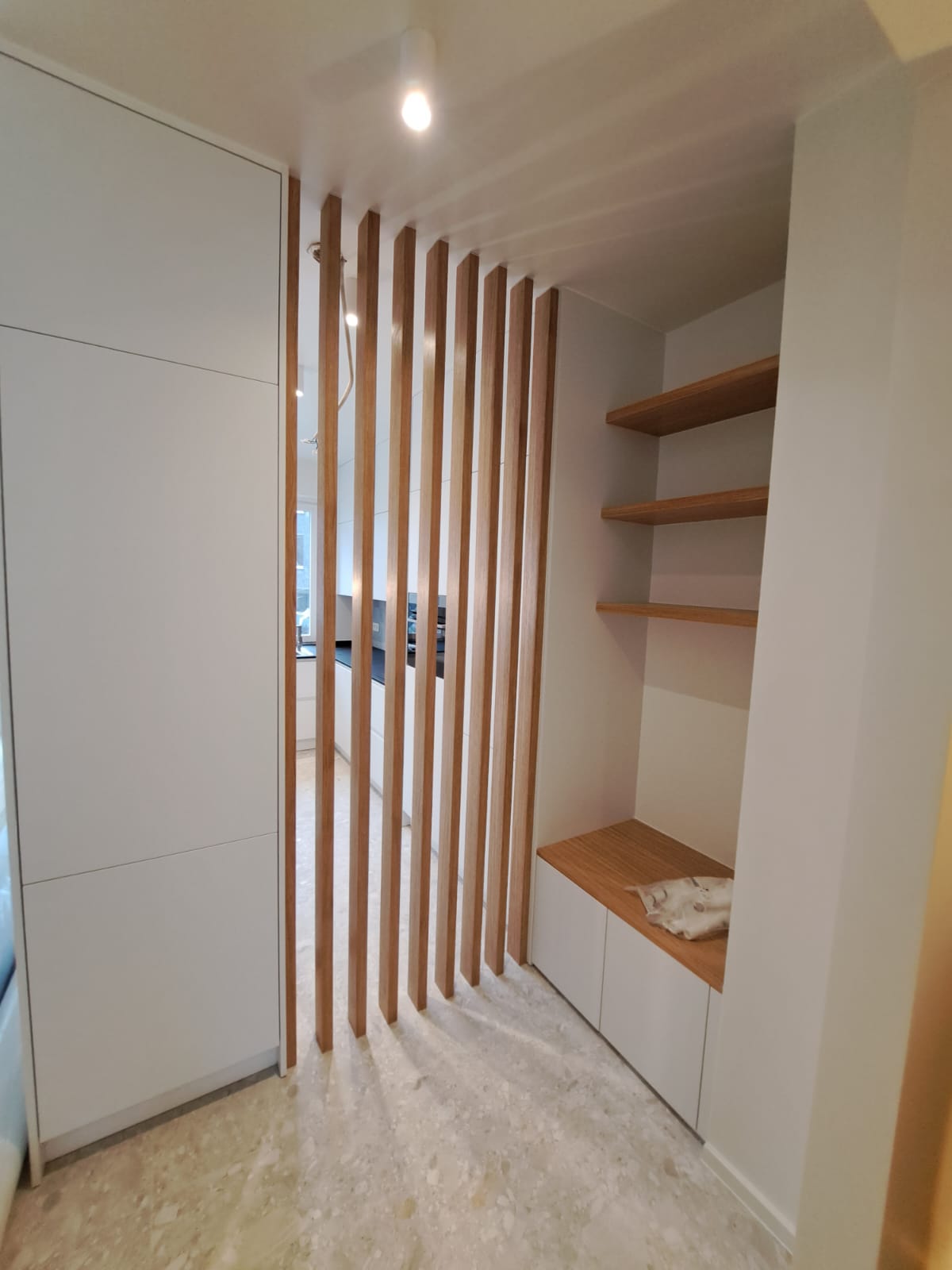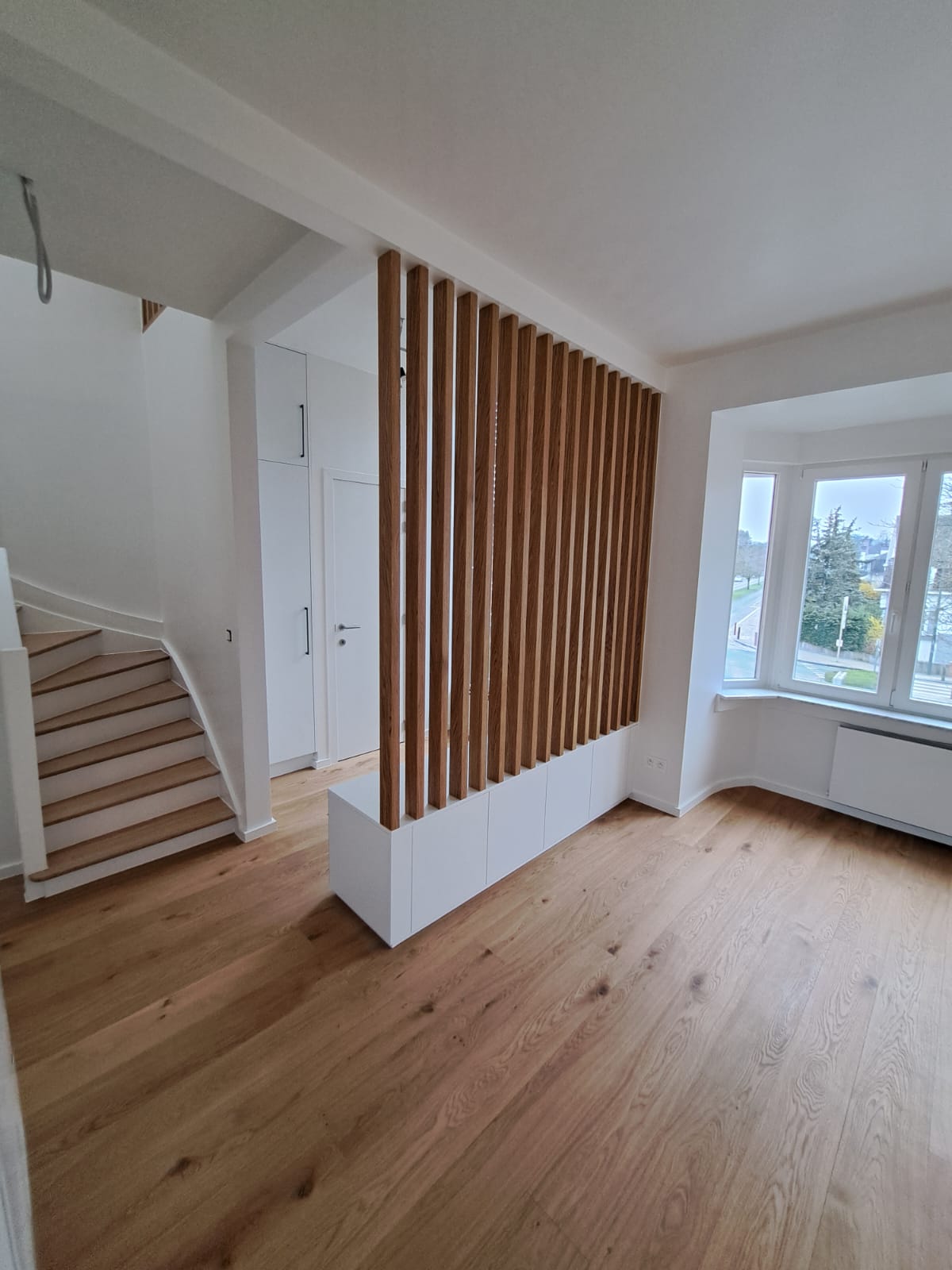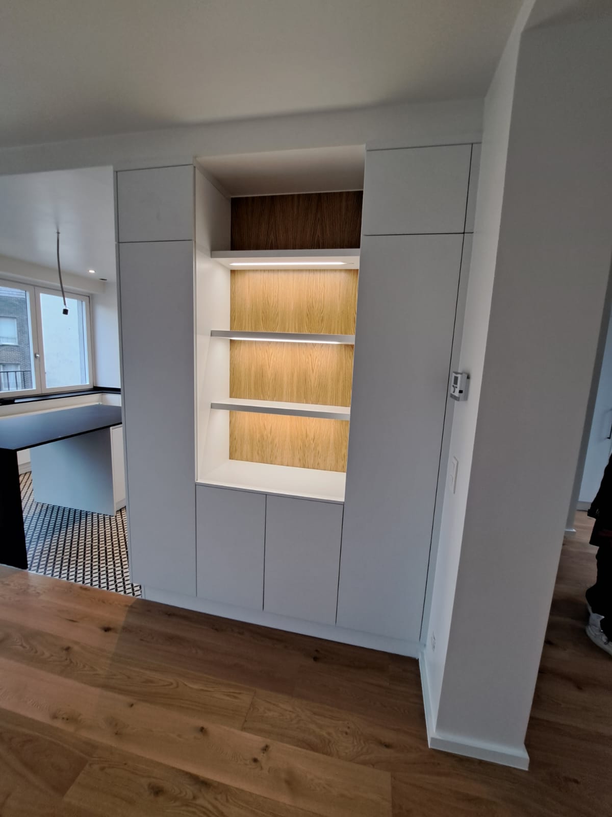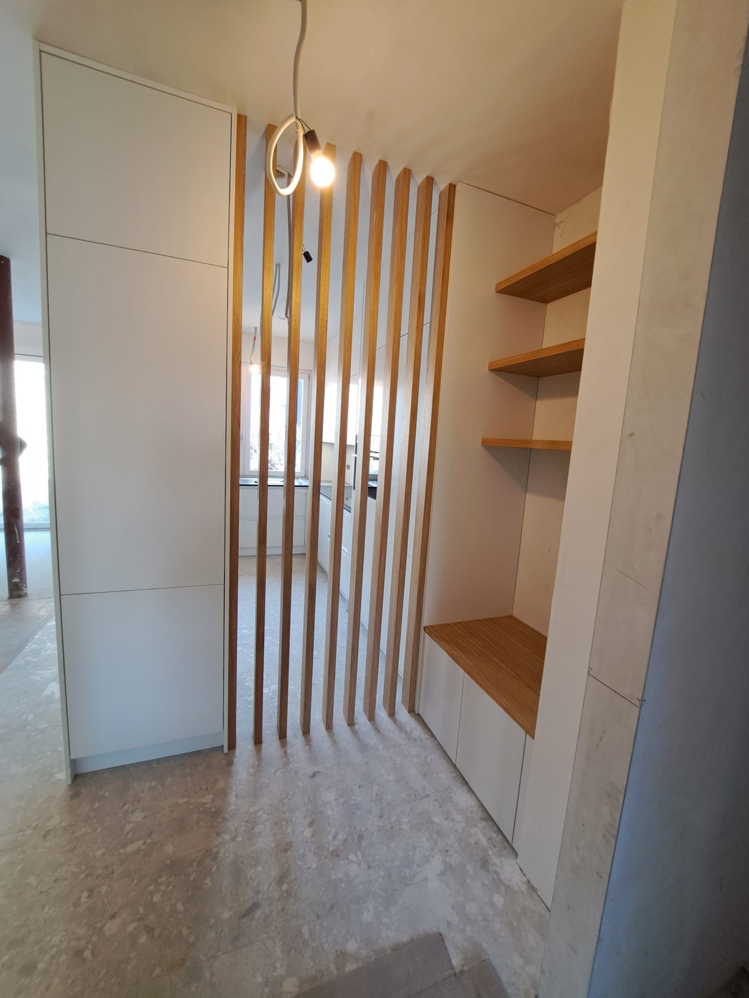 All’interno di una tipica abitazione belga degli inizi del ‘900, in collaborazione con l’architetto Malvine, un progetto pensato in puro stile nordico con soluzioni su misura ed ottimizzazione di tutti gli spazi con elementi verticali utilizzati per dividere gli ambienti con leggerezza.